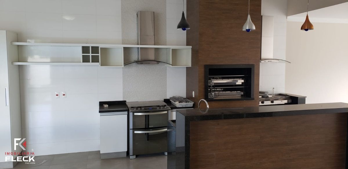 Cozinha do gourmet com pé direito duplo.